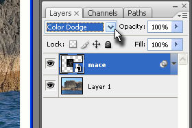 Layerju z obrazom določite senčenje na Color Dodge (glej sliko).