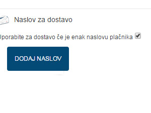 ![]() Označite Uporabite za dostavo če je enak naslovu plačnika. Ali pa kliknite na Dodaj naslov, če želite spremeniti naslov dostave, kot ste ga vnesli pri registraciji. |