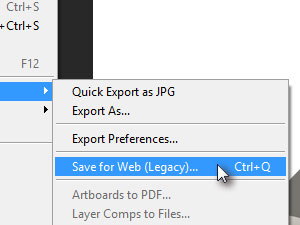 ![]() V novem oknu označite pod Export> Save for Web (Legacy)... |