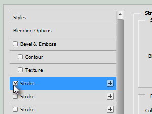 ![]() V novem oknu označite Stroke (glej sliko). Jaz sem dodajal stil Strok že prej, zato se je prikazal spodaj, drugače boste prvič videli le enega (v mojem primeru Stroke).
