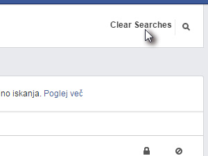 ![]() Kliknite nato v istem oknu na povezavo Clear Searches. Facebook žal nima dovolj denarja, da bi uredil prevode v slovenski jezik :( |