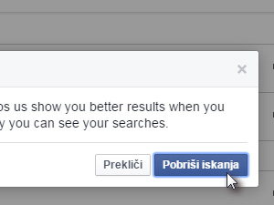 ![]() In potrdite brisanje s klikom na gumb Pobriši iskanja. Facebook žal nima dovolj denarja, da bi uredil prevode v slovenski jezik :( |