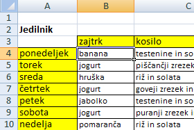 V Excelu ustavrite poljubno tabelo, kateri bomo dodajali informativne komentarje.