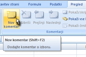 ![]() V orodni vrstici odprite zavihek Pregled in nato kliknite na ikono Nov komentar. |