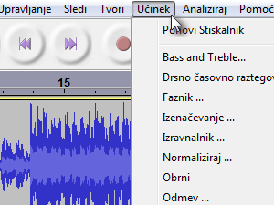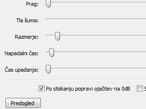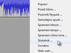 Če so določeni deli zvočnih posnetkov preveč glasni oz. preveč tihi, lahko uporabimo izenačevanje glasnosti oz. stiskanje.