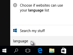 Za namestitev uporabniškega vmesnika Windows 10 v slovenskem jeziku levo spodaj kliknite gumb Start in v iskalno polje vpišite language.