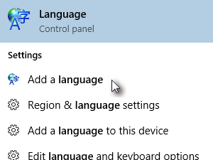 ![]() Med najdenimi rezultati izberite možnost Dodaj jezik oz. Add a language. |
