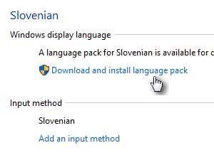 ![]() Za namestitev jezika izberite možnost Download and install language pack. |