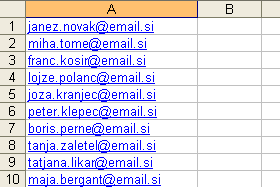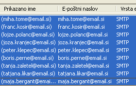 To najlažje storimo tako, da kliknemo na prvi elektronski naslov. Nato se z drsnikom postavimo na konec seznama, pritisnemo tipko SHIFT ter kliknemo še na zadnji naslov iz seznama. |