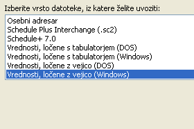 V naslednjem pogovornem oknu izberemo možnost Vrednosti, ločene z vejico (Windows) in zopet potrdimo izbiro s klikom na gumb Naprej.