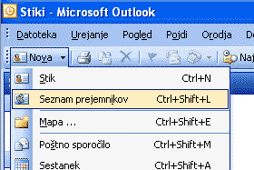 V padajočem meniju Nova izberemo Seznam prejemnikov. |