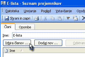 Kliknemo na gumb Izbira članov ...