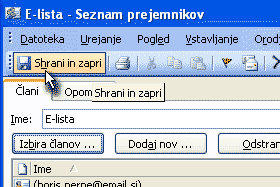 Sedaj pod Ime vpišem še poljubno ime naše liste ter kliknemo gumb Shrani in zapri in postopek je končan.