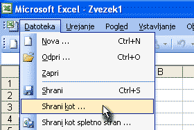 V meniju Datoteka izberemo Shrani kot ...