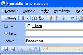 Sedaj lahko v primeru pošiljanja novih elektronskih spročil enostavno za prejemnika vpišemo ime našega seznama in spročilo bo avtomatsko poslano vsem prejemnikom v seznamu.
