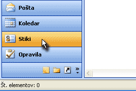 Odpremo program Outlook ter z miškinim klikom kot aktivno okno izberemo Stiki.