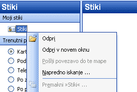 Z desnim miškinim gumbom kliknemo na Stiki, da odpremo padajoči meni ...