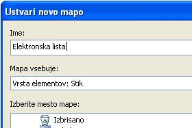 Vpišemo poljubno ime nove mape. Sam sem izbral ime Elektronska lista