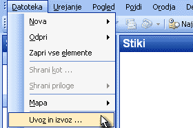 S klikom odpremo padajoči meni Datoteka in tam izberemo možnost Uvoz in izvoz ...