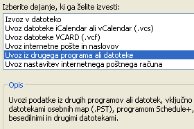 Odpre se novo pogovorno okno kjer izberemo možnost Uvoz iz drugega programa ali datoteke in potrdimo izbiro s klikom na gumb Naprej.