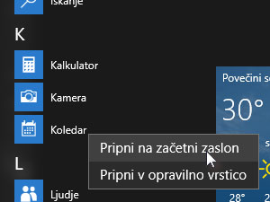 ![]() Poiščite poljuben program, kliknite nanj z desnim miškinim gumbom in izberite Pripni na začetni zaslon. |