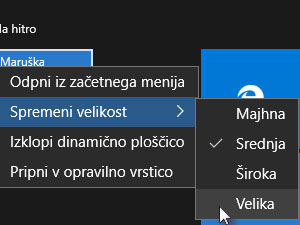 ![]() Kliknite na program oziroma ploščico z desnim miškinim gumbom, izberite Spremeni velikost in nato po želji. Jaz sem za koledar izbral Velika. |
