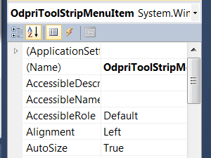 ![]() Nato zopet kliknemo na ContextMenuStrip ter kliknemo Odpri ter spremenimo lastnost (Name) oz. ime v Odpri_form. Sedaj kliknemo še na NotifyIcon ter na desni strani nastavimo lastnost ContextMenuStrip na vrednost ContextMenuStrip1. |