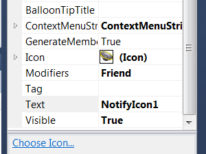 ![]() Da pa bo program deloval pravilno, moramo med lastnostmi NotifyIcon dodati še ikono.