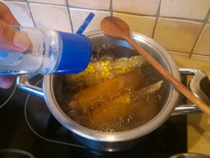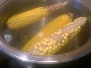 Ko bo voda začela vreti, postavite storže koruze v vrelo vodo.