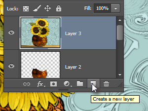 ![]() Dodali bomo še podpis na vazo, kot je to storil tudi sam Van Gogh. Ustvarite nov layer. |