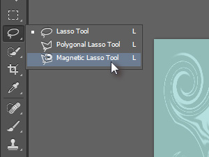 ![]() Izberite orodje Magnetic Lasso Tool. Držite z miško na orodju Lasso Tool (bližnjica je tipka L) toliko časa, dokler se vam ne prikažejo ostala orodja.