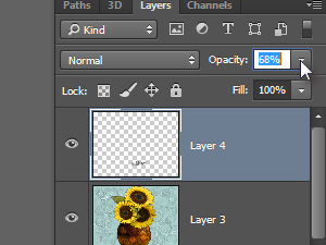 ![]() Nastavite layerju Opacity na manjšo oziroma poljubno vrednost (glej sliko). |