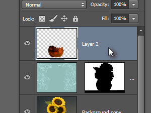 ![]() Pritisnite tipki Ctrl (Command na MacOS) in J skupaj, da označeni del duplicirate v nov layer. Potem pa ta layer povlecite na vrh v paleti layerjev. |