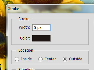 ![]() Vazi bomo dodali značilen rob, ki ga je Van Gogh dodajal na svoje slike. Kliknite zgoraj na Edit in izberite Stroke... V novem oknu nastavite enake vrednosti kot jaz in kliknite na gumb OK. |
