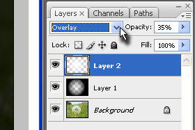 Senčenje novemu layerju določite na Overlay (glej sliko) in Opacity na 35%.