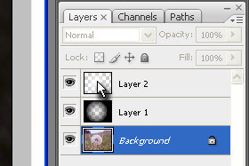 Prvotni layer (Background) naj ostane označen, potem pa držite tipko CTRL in kliknite na sličico na layerju z belim krogom.