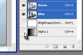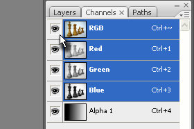 V zavihku Channels odznačite Alpha 1, ki ste ga prej ustvarili.