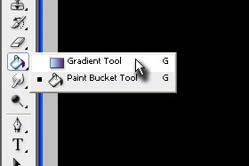 Držite z miško na orodju Paint Bucket Tool (bližnjica je tipka G), da se vam prikažejo ostala orodja. |