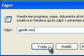 V polje Odpri vpišite gpedit.msc in kliknite na gumb V redu.