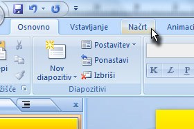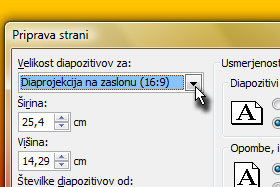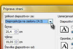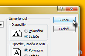 V istem oknu lahko določite še ležečo usmerjenost diaprojekcije in še mariskaj drugega.