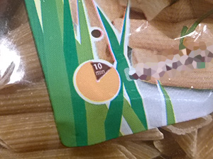 Na vrečki z polnozrnatimi makaroni se nahaja tudi čas kuhanja.