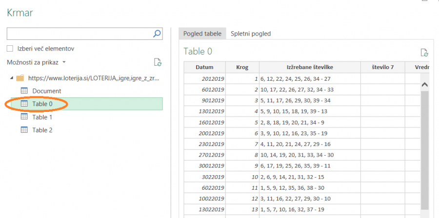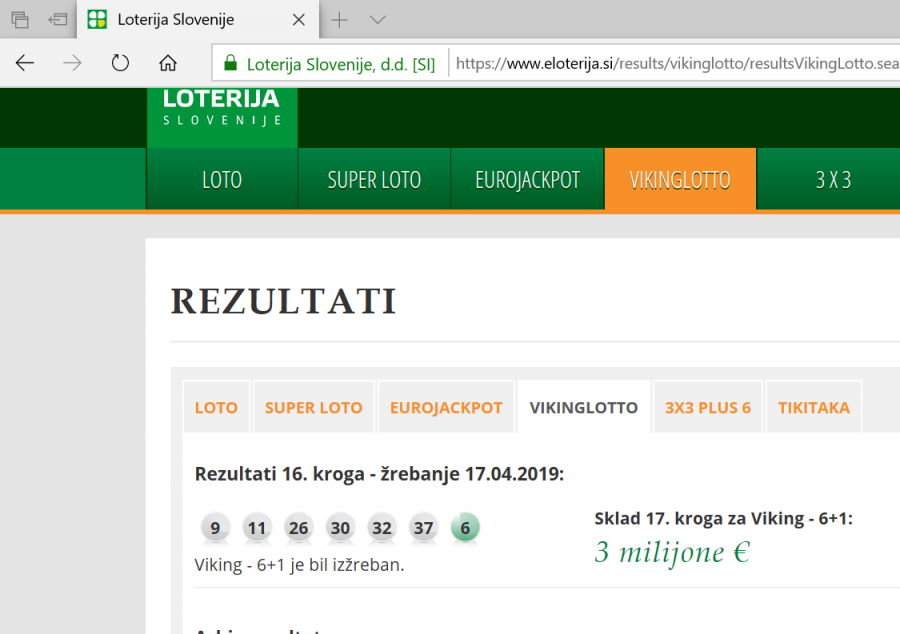 https://www.loterija.si/LOTERIJA,,igre,i.... na katerem so rezultati žrebanja urejeni lepo v tabeli. Ko uvažate, morate v levem seznamu izbrati ustrezno tabelo. spremenjeno: kljuka (5.5.2019, 2:10)