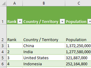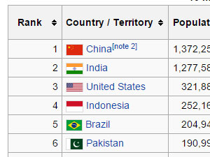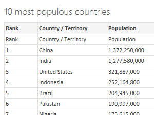 Jaz sem primer vzel Wikipedia z podatki o prebivalstvu.