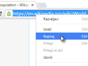![]() Označite spletni naslov in ga kopirajte. Označite ga, kliknite nanj z desnim miškinim gumbom in izebrite Kopiraj. |