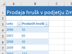 Ustvarite podobno razpredelnico s podatki kot jaz.
