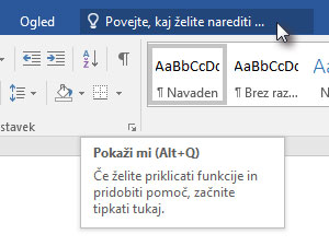 ![]() Namesto, da bi bi iskal gumb za krepko besedilo, sem raje kliknil zgoraj v polje Povejte, kaj želite narediti ... |