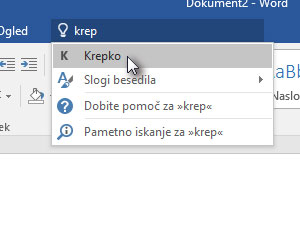 ![]() Napišite na primer krep in Word vam bo sproti prikazoval možnosti, katero nato izberete (glej slik). |