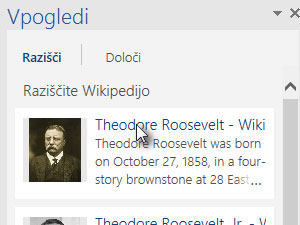 ![]() Na desni stran vam bo Word prikazal stolpec Vpogled in zadetke na iskane besede. Če želite, lahko tudi kliknete na naslov članka ... |