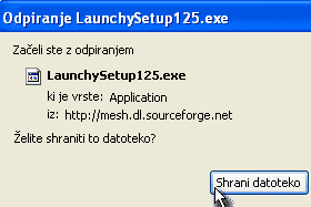 Po prenosu instalacijske datoteke z miškinim dvoklikom zaženemo LaunchySetup125.exe datoteko.