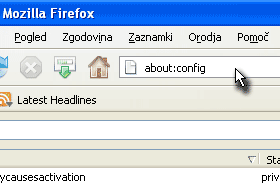 Najprej v naslovno vrstico programa Firefox vpišemo about:config